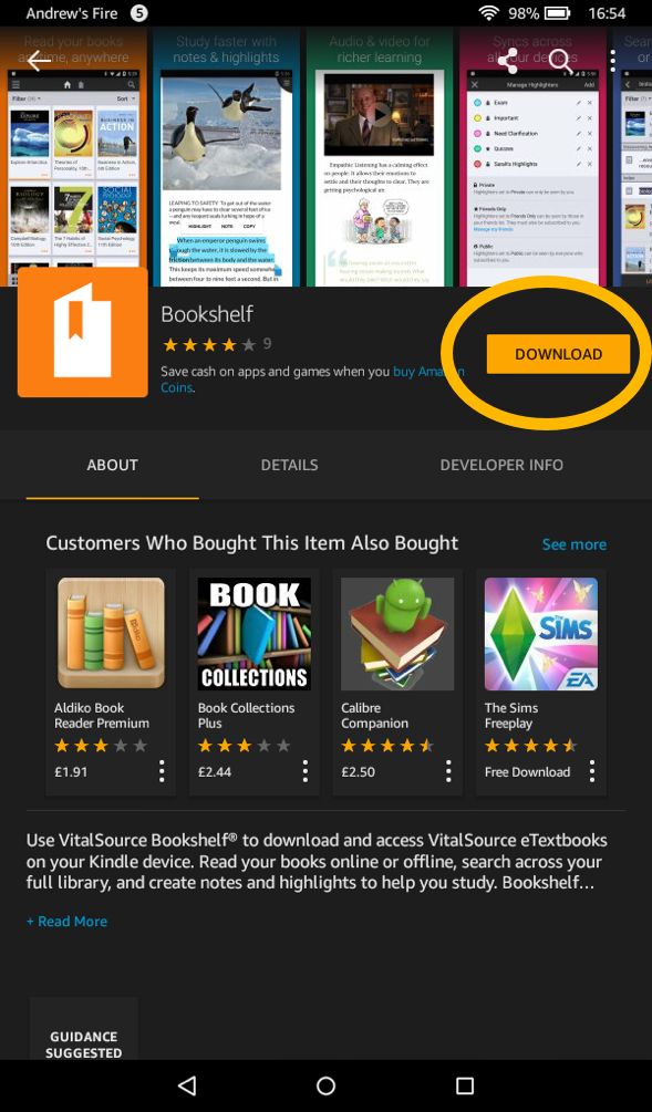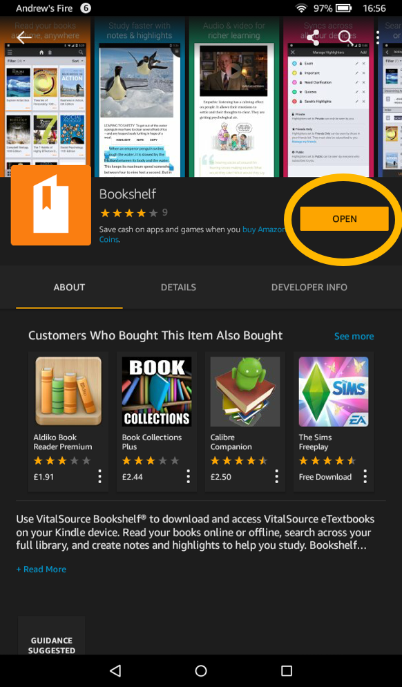 Bookshelf by Vitalsource on Kindle Fire