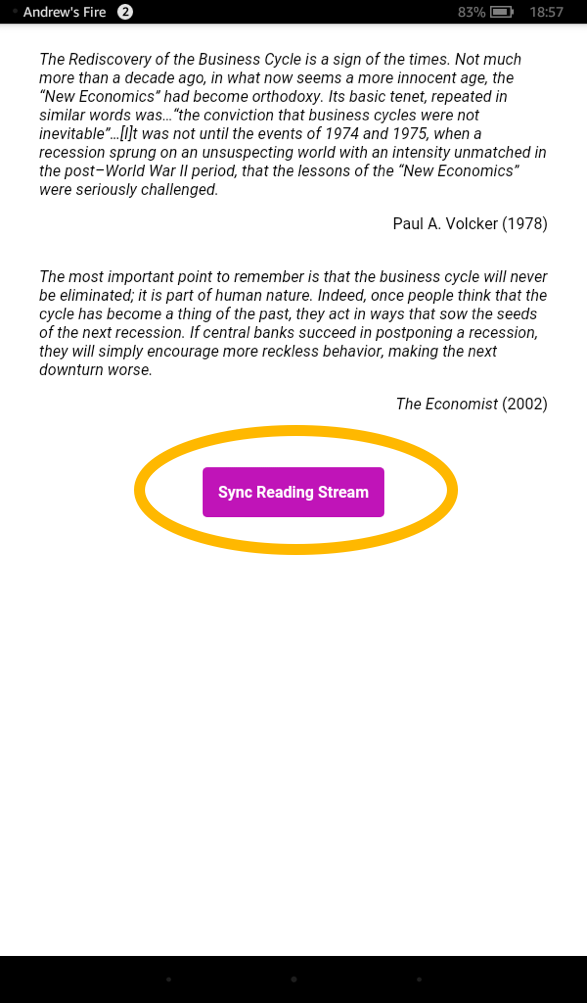 At the end of each chapter, you will find the purple "sync reading stream" button.